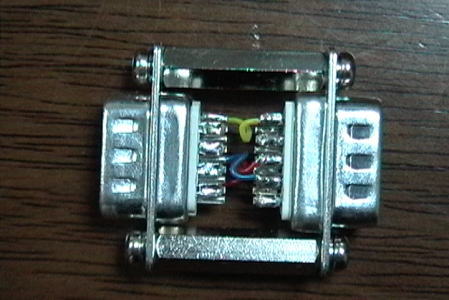 参考までに自作のクロス変換のアップです。 5番ピン(GND)同士を接続し、2番(RxD)3番(TxD)をクロスに接続しただけの簡単なものです。 配線しやすいようにコネクタを上下逆に取り付けています。 |