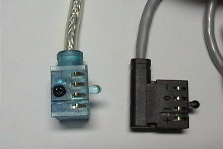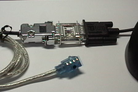 スケルトンタイプのためケーブルもスケルトンのものを探して付けました。 やはりピンを曲げる作業は神経を使います、 本来抜け止め用の出っ張りをつぶさないようにペンチで端をつかみ曲げ、 再度逆からつかみねじれを補正、その後ケースに付けてみて角度を調整のような作業でした、もっと簡単に出来る方法が有るのかもしてないけれど。 (あとでなかざわかずお さんから「慣れるとカシメの部分をラジオペンチでつまんで、親指の腹に押し付けてヒョイと曲げるだけです。」とアドバイスをいただきました) あとは組み立ててねじ止め、やはりねじ止めをすると安心感が有ります。 新プラグでは最初挟み込みが不完全で隙間が出来ましたが、新プラグでは問題なしでした。 こちらは汎用性を持たせるために9ピンのRS用のコネクタを付けました。 これからpalmに接続するためにはクレイドルとクロス配線にする必要があります、 これを市販のものでそろえようとすると、オス−オス変換、クロス変換、オス−オス変換と必要です。 結局こちらも作成しました。 9ピンのオスのコネクタを基盤などを固定する継ぎ手(2cm程度)でつなぎ作成しました、自分では結構うまくできたと思っています。 |
