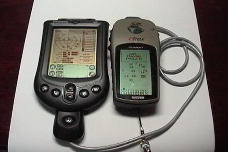 実際にpalmとeTrexを接続した時の写真です。 MapPilotを使用しているときの写真ですが、GpilotSを使用してログの管理も出来ます。 ログ管理の方がメインになりそうです。 カーナビをするときは旧のケーブルでクレイドルにPalmを乗せてダッシュボードに置くスタイルになりそうです。 |