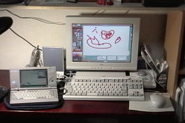 我が家のインターネット2台? うちの子供(アイリン)はコンピュータの事をインターネットと勘違いしているらしい。 いつもコンピュータを触っていると「インターネットしているの?コツコツしたいの」 とよってきます、コツコツとはお絵かきソフトのこと、タブレットで絵を書くとそんな音が するのでそうよんでいるらしい、正しく教育をせねばと思っています。 Librettoをさして「アイリンのインターネット。」(小さいのは自分のものときめつけている)